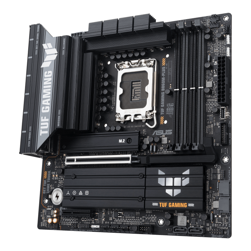 La ASUS TUF GAMING B860M-PLUS reprend tous les éléments essentiels des derniers processeurs Intel® Core™ Ultra (Series 2) et les associe à des fonctionnalités prêtes pour le jeu et à une durabilité éprouvée. Conçue à l'aide de composants ultra-robustes, de solutions optimisées pour l'alimentation et d'un système de refroidissement complet, cette carte mère surpasse les attentes, offrant de solides performances gaming et une stabilité hors-pair à votre système. Les cartes mères TUF GAMING subissent également des tests d'endurance rigoureux pour s'assurer qu'elles peuvent supporter des conditions où d'autres pourraient échouer. Cette plateforme offre la puissance et la connectivité qu'exigent les applications de PC IA avancées.