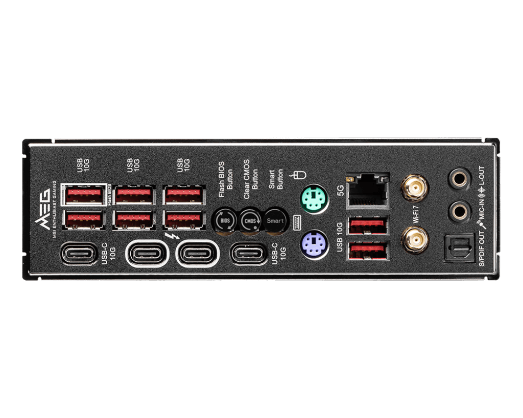 • Design Ultra Connect : deux ports Thunderbolt™ 4, Intel® Killer™ 5G LAN et Intel® Killer™ Wi-Fi 7 pleine vitesse, des solutions de dernière génération pour une utilisation professionnelle et multimédia, qui assurent une connexion et des transferts de données sécurisés, stables et ultrarapides.