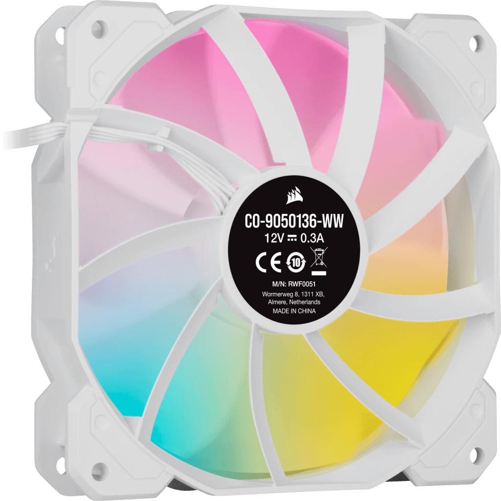 Le kit de trois ventilateurs CORSAIR iCUE SP120 RGB ELITE Performance dispose de huit LED RGB personnalisables sur chaque ventilateur, complétant avec brio l’éclairage RGB saisissant de votre PC.