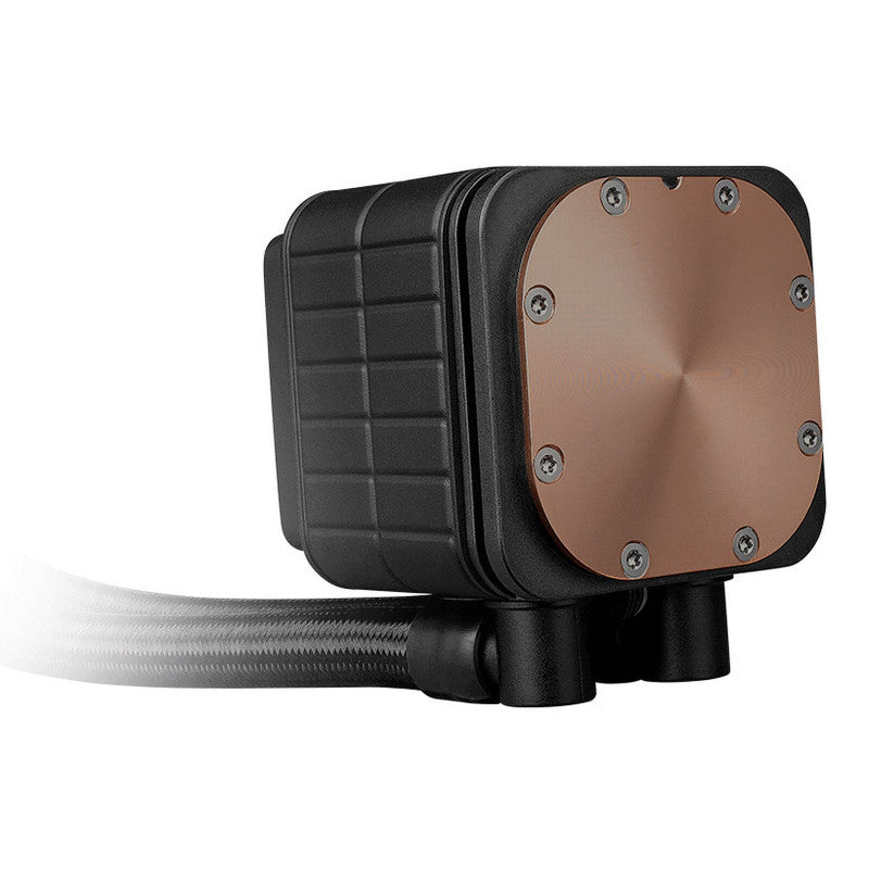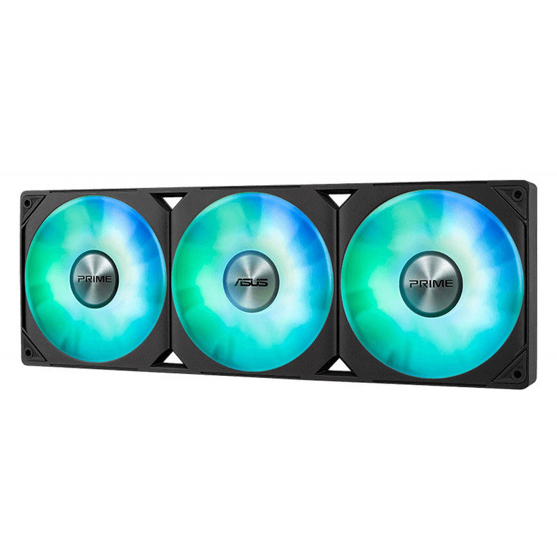 Refroidisseur de liquide pour CPU tout-en-un Prime LC ARGB avec zone de contact spécialement conçue pour le CPU et canaux à ailettes, bloc d'eau avec options de lentilles miroir à l'infini, ventilateurs ARGB préinstallés et éclairage Aura.