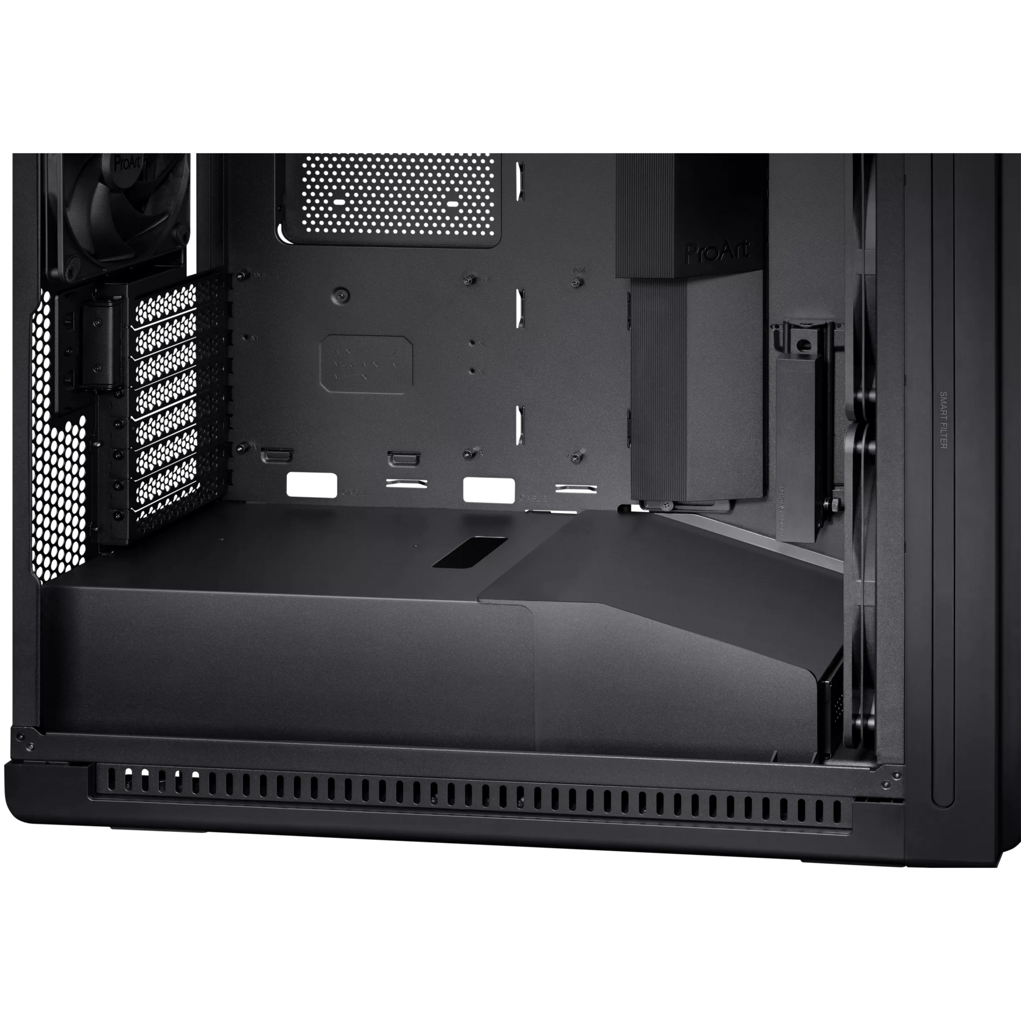 Boîtier d'ordinateur ProArt PA602 E-ATX, support de radiateur 420 mm, un ventilateur de 140 mm et deux ventilateurs de 200 mm préinstallés, indicateur de poussière IR sur le panneau avant, verrouillage de l'alimentation, montage PCIe sans outil, support USB 20 Gb/s