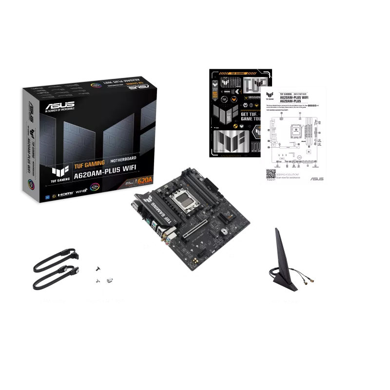 ASUS TUF GAMING A620AM-PLUS WIFI takes all the essential elements of the latest AMD Ryzen™ processors and combines them with game-ready features and proven durability. Engineered with military-grade components, an upgraded power solution and a comprehensive cooling system, this motherboard goes beyond expectations with rock-solid and stable performance for marathon gaming. TUF GAMING motherboards also undergo rigorous endurance testing to ensure that they can handle conditions where others may fail. This platform delivers the power and connectivity that advanced AI PC applications demand.