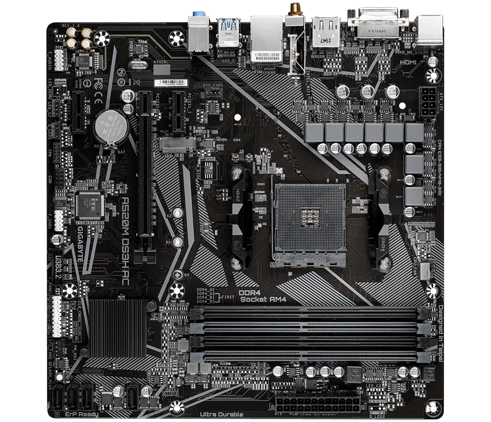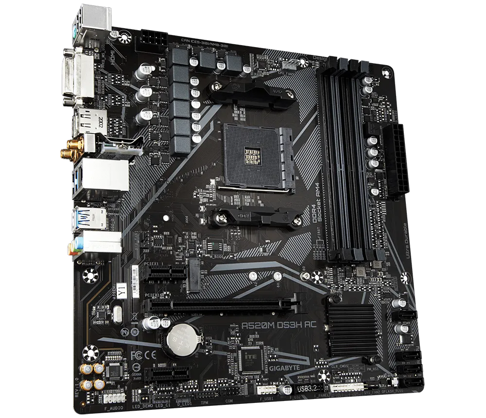 Carte mère AMD A520 avec alimentation numérique pure, audio haute qualité, LAN Gaming GIGABYTE avec gestion de la bande passante, PCIe 3.0 x4 M.2, Wi-Fi Intel double bande 802.11ac, RGB Fusion 2.0, Smart Fan 5, Q-Flash Plus