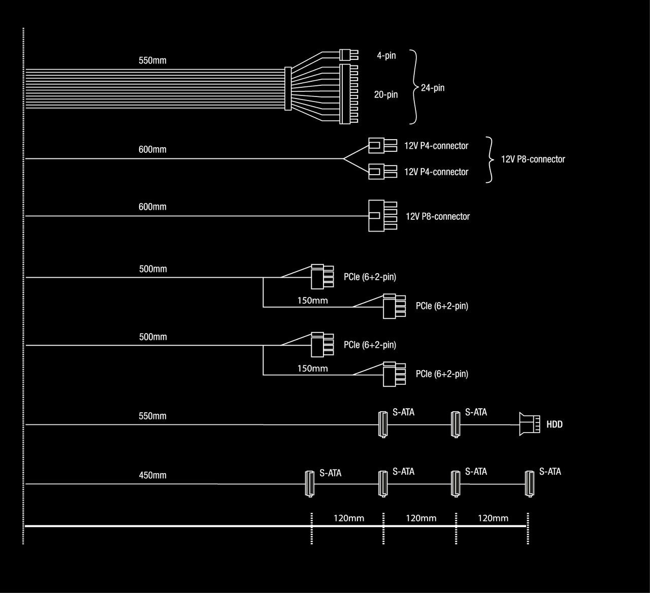 | Longueur du câble jusqu'à la carte graphique (cm) | 55 |
